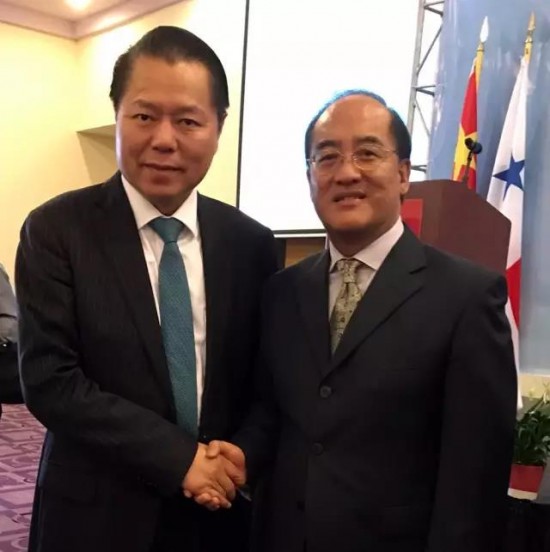 丁佐宏與中國駐巴拿馬大使館代辦王衛(wèi)華合影