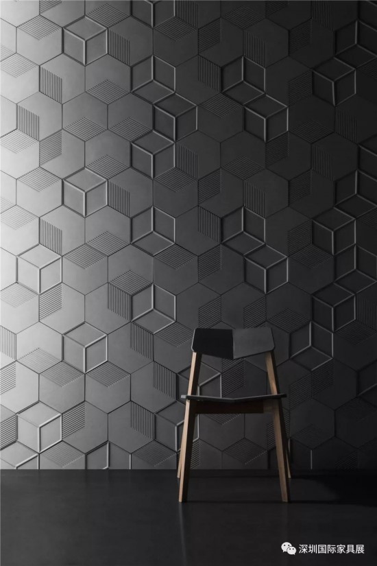 市面上的常規墻磚一般是利用顏色或直接設計起伏的立體表面來營造三維效果。“影”從不同的角度出發,利用水泥高可塑性的材料特質,將立體結構融于墻磚平面中。利用光在墻磚的二維平面上折射形成的陰影深淺來營造立體感,為裝飾性建材產品提供更豐富的發展方向。