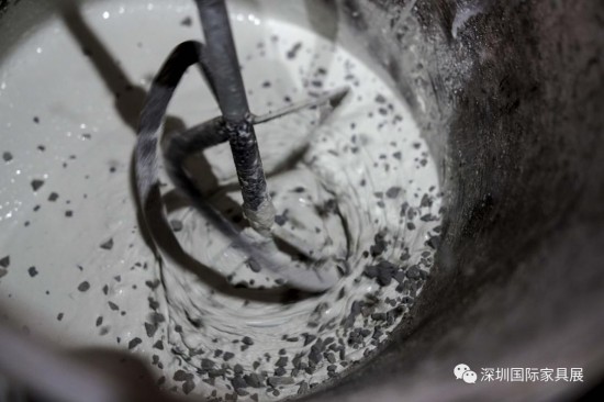 消費時代的春雨催生出一茬茬新需求,也催生了人類欲望的瘋長。生產不再只是滿足生存的基本幸福,人類壟斷、自然破產、大地虧空,欲望的摻雜讓生產虛假地膨脹,大量陶瓷邊角料的堆棄成為最佳注腳。本土創造嘗試將廢棄陶瓷邊角料與混凝土相結合,是想驗證一種思路:利用水泥的膠凝作用,是不是能使其利用率不再受限?將陶瓷邊角料與混凝土相結合,回歸到建材產品中去。將陶瓷的沉痛哀鳴一并攪碎倒進混凝。土骨料,在流水線的模子里灌造極致。一方方,灰白,堅韌,平滑,莊重,是生命死來復生的肅穆,是欲望燃盡的蒼白沉默。