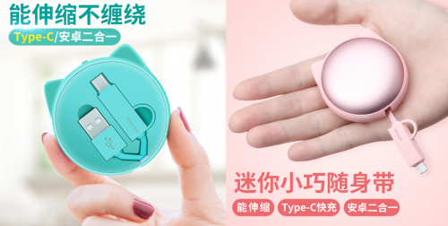 硅膠+磨砂的設計,給你奶油般光滑的觸感,萌寵造型的小耳朵,讓你每天心情都超級軟萌,好像領養了一直小貓咪一樣,小小的體積,容納typec&;安卓兩線,伸縮收納的方式讓你徹底告別纏線的煩惱,從此攜帶一只軟萌Q,走遍天下都不怕。