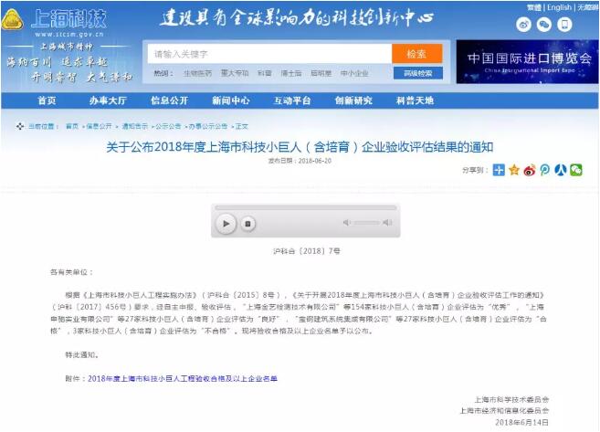 2018年6月,經上海市科學技術委員會、上海市經濟和信息化委員會權威專家驗收評審,有行鯊魚(上海)科技股份有限公司成功通過“上海市2018年科技小巨人” 驗收評估,斬獲“評級優秀”資質!