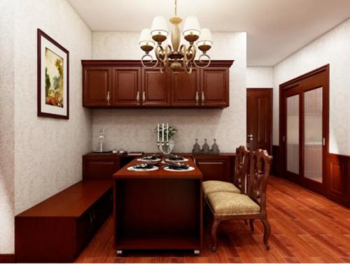 廚房與餐廳設計風格如出一轍,以峽谷櫻桃為主色系,加上輪廓分明的設計,無處不彰顯波爾多莊園的貴族氣息。無夸張繁復的木門造型,以簡單門板造型配上煙機罩精致線條,整體協調,氣質完美升級,采用L型廚房是根據業主使用和生活習慣設計的,分為:洗、切、炒三大操作區域,合理規劃可以節省時間和精力,提高生活質量,貴族生活美味盡在廚房之間。