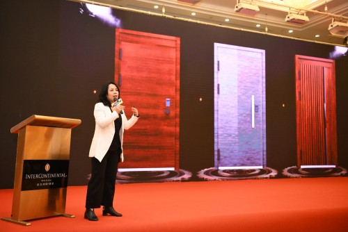 德盾市場部經理程潔女士是德盾安全門品牌的產品總設計師,通過程經理圖文并茂的講解,把德盾產品2019年的升級優勢分析得很透徹,讓在座的經銷商一目了然,對德盾有了更深入的了解。程經理站在設計師的角度,闡述產品的設計理念,把最新的家居潮流風格和對應的新品推薦給大家,一下子把大家的心都給嗨起來。