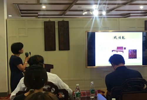 龍順成銷售部經理胡文杰分享“京作木雕和東陽木雕的差異和各自優勢”