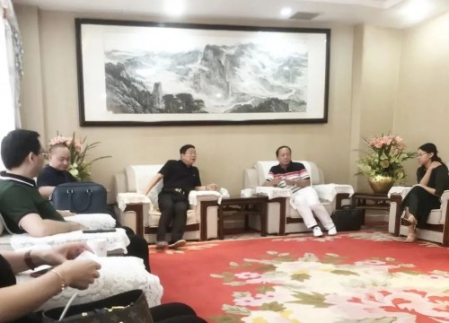 ▲蘇州家具展創辦人趙藝學向贛州市委常委、南康區委徐兵書記匯報蘇州展12年的發展歷程及本屆展會籌備情況
