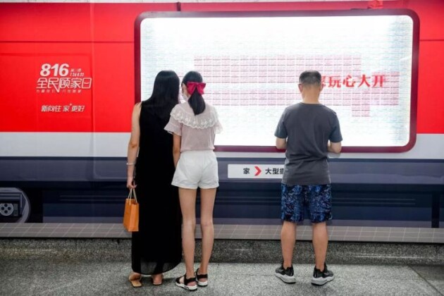例如,在人來人往的杭州西湖文化地鐵站,顧家家居打造了一輛“向往號列車”,以5000張車票貼滿了總長28米的7節(jié)車廂,向人們展示了床墊、衣帽間、餐桌、櫥柜、組合沙發(fā)、按摩椅、單人沙發(fā)7種向往的生活場景,引來大批民眾圍觀和參與。
