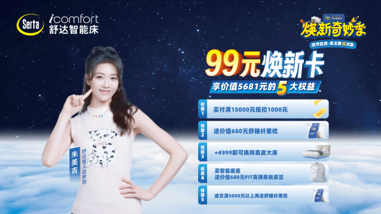 99元煥新卡,享5681元五大權益:活動期間購買99元煥新卡,即刻享受價值5681元五大權益,(定金膨脹越省越多、到店簽到好禮相送、加價換購超值升級、專屬好物買就送,滿額贈枕睡感升級!)