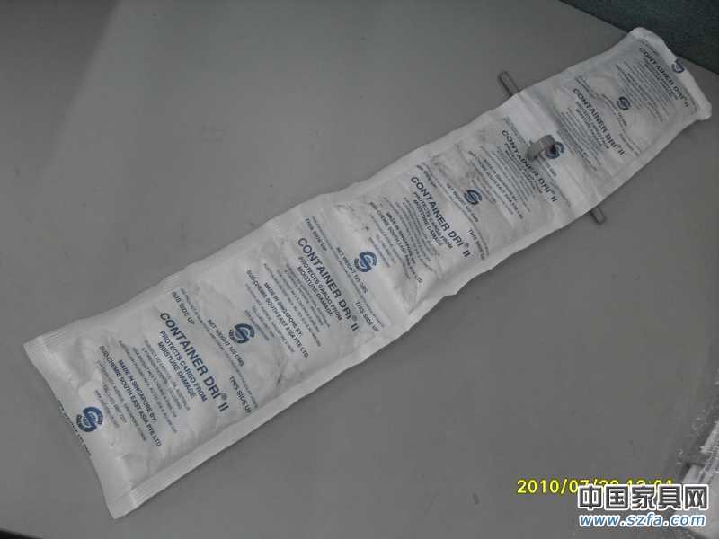 在集裝箱內不同方位直接放置即可,具體數量根據貨物種類、包裝材料、運輸周期、途中氣候變化(溫度、濕度變化)、防潮標準等確定,一般20英尺集裝箱(貨柜)按照需要吸附8-16公斤水汽來確定,若采用吸附量為280%的CD2干燥劑,則需要放置3~4公斤干燥劑,即CD2用24~32包(CD2每包125g),40英尺箱的干燥劑用量則加倍。
