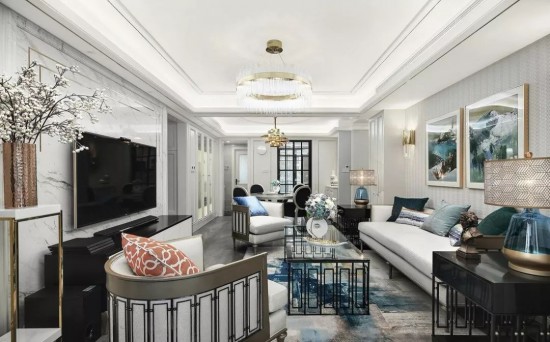 門廳小部分砌墻,拉伸玄關空間,沒有繁瑣復雜的造型,從燈飾到畫飾,精致又有格調,保留美式原汁原味。