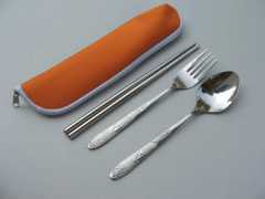 (10) 便攜式旅行餐具三件套,廣告促銷禮品