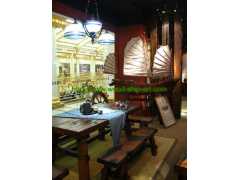 展示了舊船木的殘缺美,木質的潤滑感,在天然的粗獷與藝術的精巧間,將舊船木的魅力最大限度地表現出來。“品尚軒”船木家具材料多選用吞水量較大退役于二戰期后的的老海船拆下的木料,這些老船木多為楸木、柚木、鐵力木、石椎木、昆甸等,材質堅硬,能久經風雨。舊船木重新使用,不但乎合資源環保,更將影響深遠。