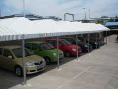 此產(chǎn)品是一種新型的停車棚,在澳洲和歐美十分流行,面料采用進口的高密度樹脂為原料添加紫外線吸收劑經(jīng)拉絲再編織而成,面料具有阻擋和吸收紫外線的功能,最高可以助擋96%的紫外線,使停在車棚里的愛車的油漆和塑料件免遭紫外線的破壞,同時還提供85%以上的遮光率,使棚內(nèi)的溫度比棚外降低10左右,由于面料有無數(shù)個細小的孔,決定了產(chǎn)品具有良好的透氣性。普通的面料由于熱空氣上升的原理,大量的熱空氣會聚集在棚的下方無法散去導(dǎo)致溫度升高,我司的面料就很好的解決了這個問題。車棚采用標(biāo)準(zhǔn)鋼管鐵件和合理的建筑設(shè)計結(jié)構(gòu),保證車棚有良好的承載力和抗沖擊力。車棚鋼管鐵件全部經(jīng)過鍍鋅處理,然后在刷上油漆,設(shè)計保證十五年鋼管鐵件不生銹。由于采用了新型的遮陽面料,工程造價是膜結(jié)構(gòu)的30%左右,遮陽效果卻優(yōu)于膜結(jié)構(gòu),顏色也十分豐富,可以根據(jù)現(xiàn)場環(huán)境的要求選擇合適的顏色