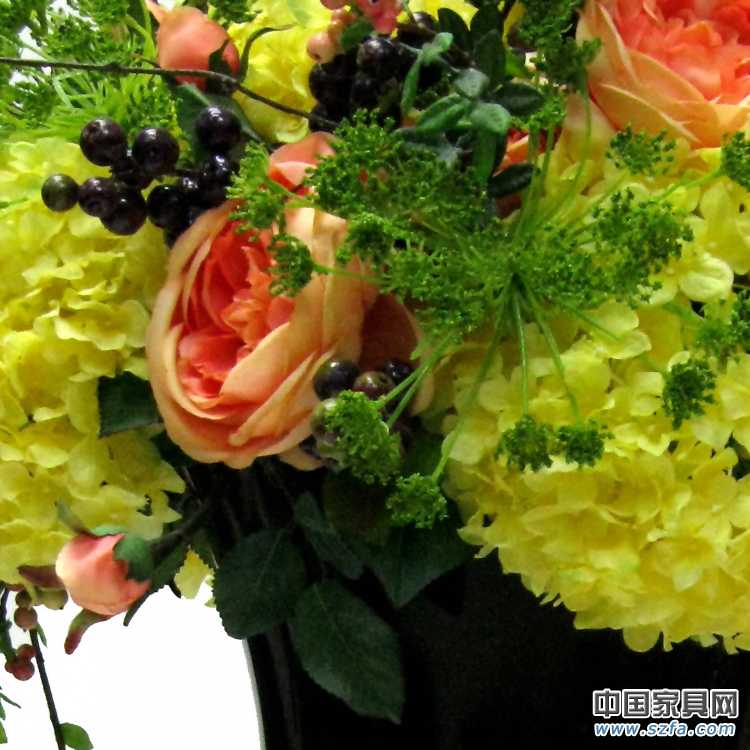 【套餐組成】黃色繡球,玫瑰,蕾絲,五頭山果大柚柑果,適合客廳,工程插花