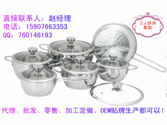 高檔不銹鋼廚具、湯鍋、炒鍋、煎鍋、奶鍋、刀叉、碗筷碟子等眾多款式,批發、零售、代理還可以加工定做,OEM貼牌生產!廠家直銷!!!櫥柜、炊具等產品配套的最佳選擇!消費者最愛的禮品,贈品!