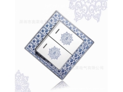 青花青墻壁藝術開關 二開單控藝術開關插座系列