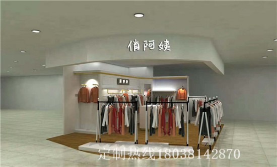 俏阿姨不銹鋼服裝展架 木制烤漆展臺效果圖