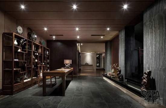 禪是東方古老文化理論精髓之一,茶亦是中國傳統文化的組成部分,品茶悟禪自古有之。設計師以禪的風韻來詮釋室內設計,不求華麗,旨在體現人與自然的溝通,為現代人營造一片靈魂的棲息之地。茶館內以素色為主調,粗糙的青石板與天然紋理的木地板厚實而流暢,仿佛劃過滿了時間的痕跡,為整個空間帶來一種大氣磅礴的氣勢。 茶館以一種獨特的姿態詮釋著中式之美。