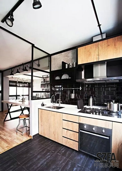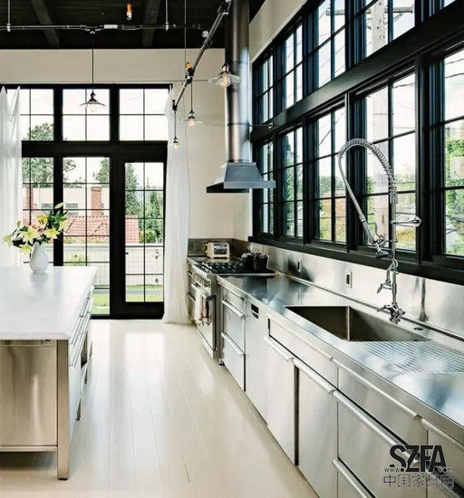 大面積的透光窗戶(hù)豐富了原本空蕩的廚房,讓層次立顯。