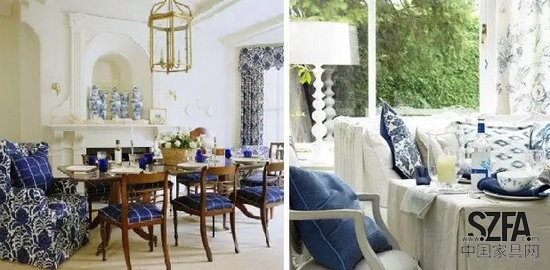 青花瓷既可以表達東方之美,又可以很完美融入西方的室內裝飾中,甚至在現代風格之下也能很好地融合。