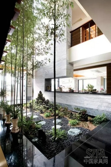 高大的樹木種植在客廳里,樹冠通過天窗延伸到室外,整個客廳瞬間充滿植物氣息