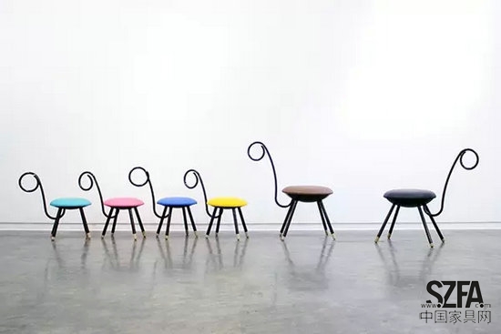 Jaime Hayon用猴子邊桌更新gardenias作品(中間的黃色椅子),在2015年米蘭家具展上展出,“猴子”邊桌用固體建筑混泥土制作而成,與周邊環境很好地相融合,猴子的可愛造型又給空間增添了活潑感。(邊桌:可以用來備餐及擺放餐具的桌子,而且可以起到美化裝飾以及隔斷作用)