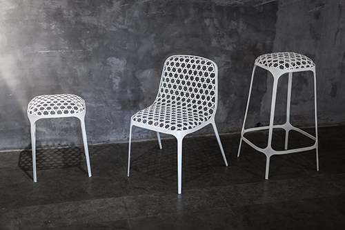 在設計中將以曲面編織為基礎的細竹絲編織工藝進行拆解和優化,結合工業設計技術,通過數字軟件進行制作和結構的推敲,再由手工藝師進行手工的加工編織,整體由“經篾”和“條絲”交織形成矛盾連貫的曲面空間,同時嘗試利用竹絲材料的交織和編織曲面的轉折得到最大的支撐力,從而能啟發更多結構和材料的擴展思考。