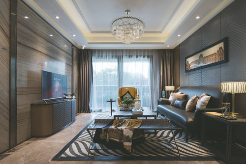 由金屬線勾勒出完美弧度的天花,比起硬朗的直線條更增添了柔和之美,處處顯現(xiàn)出輕奢主題;落地窗引入的開闊視野,營造了大氣寬敞的環(huán)境。設(shè)計(jì)師配以精心挑選的藝術(shù)吊燈、調(diào)和了整體色調(diào)的條紋地氈,巧妙地打造了室內(nèi)的層次感。