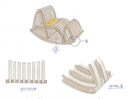 Mazibuko作品的靈感來自于Isicolo,一款代表多個非洲部落文化的發型,以及Indlamu,一種祖魯部落在慶祝儀式上跳的舞蹈。他將這些視覺參照物與互動主題、人類行為以及在人們生活中的設計角色結合起來。他說:“與他人打交道是人類的內在特質。”他將此作為自己設計的理由,為公共空間設計了一個模塊化、分層的座椅。他采用一種實用的方法,強調以人體工程學和功能性來創造由互鎖的木條制成的長凳。