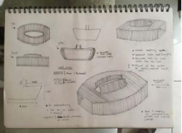隔離期間人們往往無法進行的傳統儀式,改成在家里操辦?;谶@樣的特別需求,就要有一件既能適應狹小空間,又能起到同樣效果的家具擺件。Doris想要創造一款“曲水流觴”習俗的替代品。這是一種中國古代民間的飲茶習俗:人們坐在河道兩邊,一個杯子沿著溪流漂浮。杯子停在誰的面前,誰就要喝下這杯茶。Doris設計了一張緊湊的茶桌來實現這個功能,她的靈感來自于客家的圓形房屋,受這個建筑的啟發,她設計了一個彎曲的桌子,其儲物空間隱藏在桌腿中,中央有一條縫隙可放置托盤和杯子。